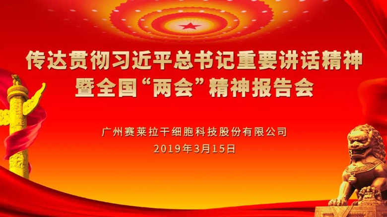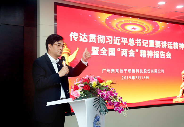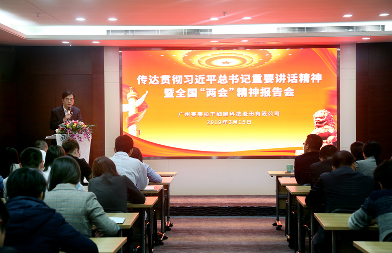 3月15日下午,全国政协委员、赛莱拉干细胞陈海佳总裁组织公司高管及企业党支部、团支部、工会、科协代表召开报告会,传达贯彻习近平总书记重要讲话精神暨全国“两会”精神,鼓励并要求赛莱拉骨干在新时代继续弘扬党建引领、科技兴国的精神,在推进中国干细胞产业高质量发展的道路上贡献力量。