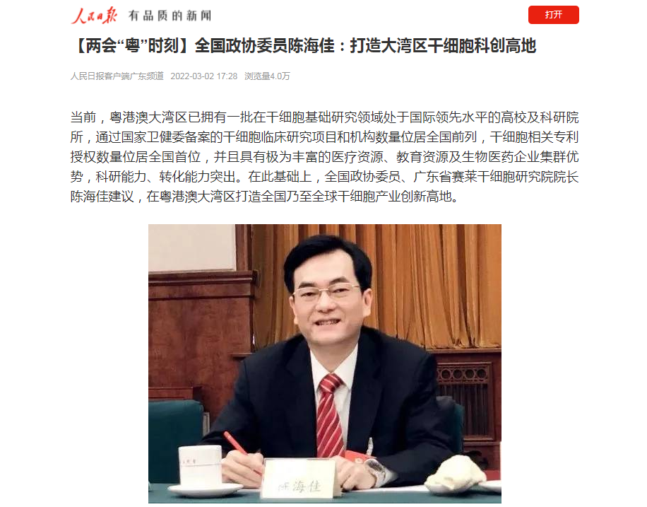 人民日报丨【两会“粤”时刻】全国政协委员陈海佳:打造大湾区干细胞科创高地